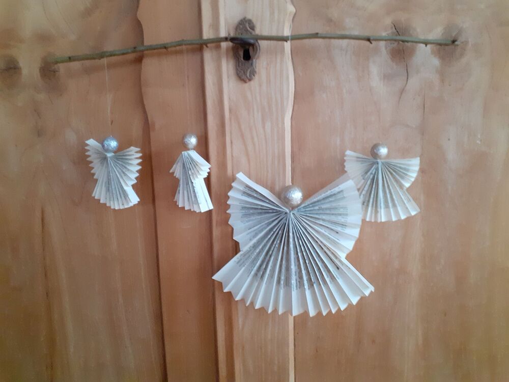 Natürlich dürfen dekorative Engel an Weihnachten nicht fehlen. Und so falteten einige Minis aus den Seiten eines alten Gotteslobes bzw aus alten Büchern kleine und große Papierengel.