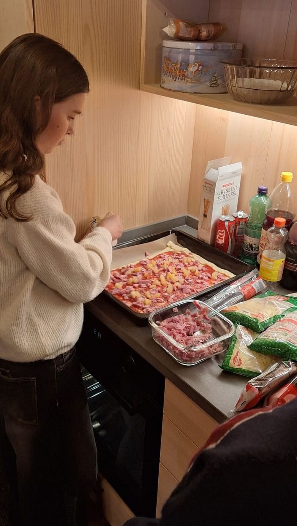 Zur Mittagszeit bereiteten die älteren Ministrantinnen mehrere Bleche mit Pizzen zu. Zum Abschluss gab es noch einen feinen Schoko-Kuchen!