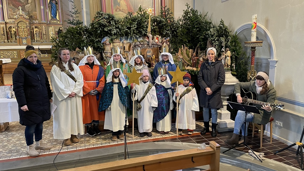 Bevor die Sternsinger am Morgen starteten, feierte Pater Regis eine Aussendungsfeier. Dabei segnete er die Sternsingergaben sowie alle Sternsingerinnen und Sternsinger.