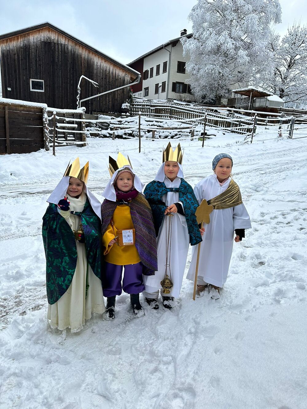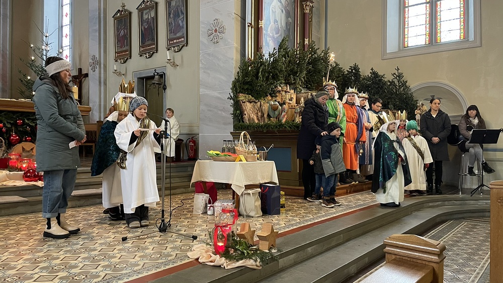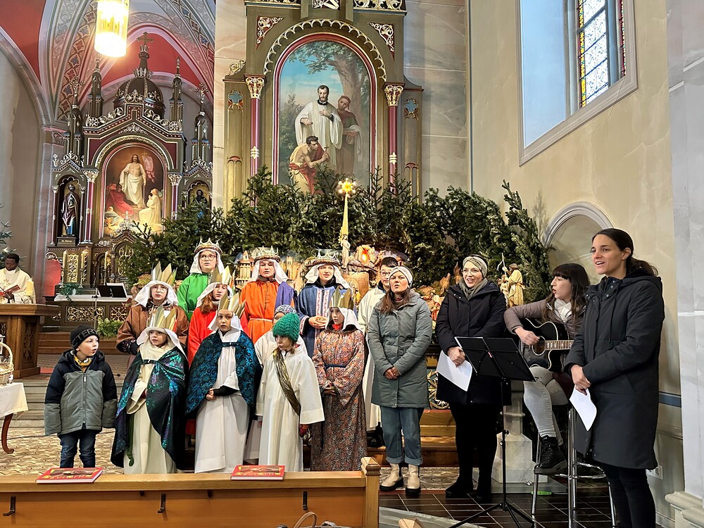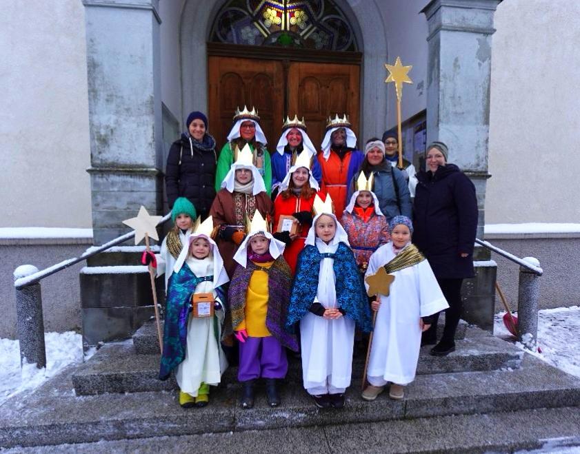Bei der Dreikönigsmesse am Sonntag, den 05. Jänner zogen alle Könige gemeinsam mit den Sternträgern in die Kirche ein und gestalteten als „Sternsingerchörle“ gemeinsam mit Darina Gassner den Gottesdienst musikalisch.
