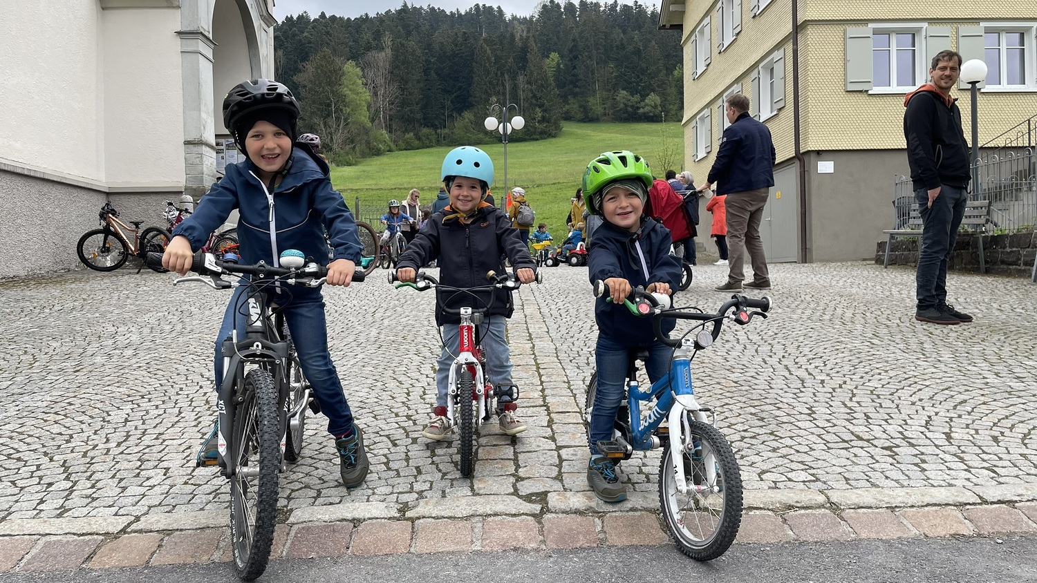 Nach Beendigung des Gottesdienstes ging es nach draußen, wo die Kinder sich mit ihren unterschiedlichen Fahrzeugen aufstellen durften und Diakon Ludwig ihnen und ihren Fahrzeugen den Segen Gottes mit auf den Weg gab. Zur Erinnerung daran bekam jedes Kind einen speziellen Aufkleber, welchen es auf sein Fahrzeug kleben durfte.