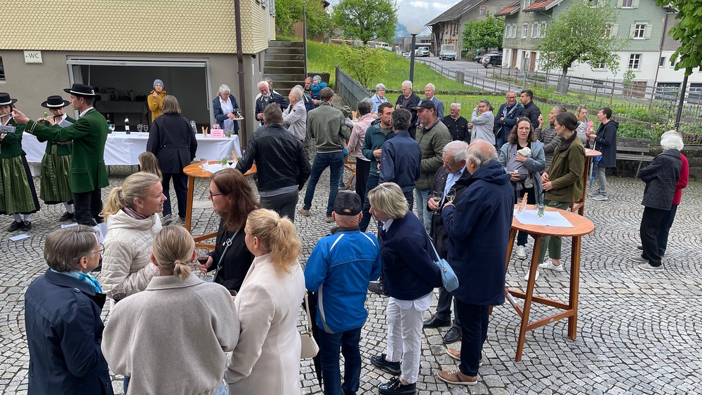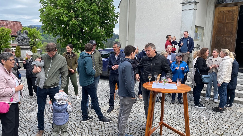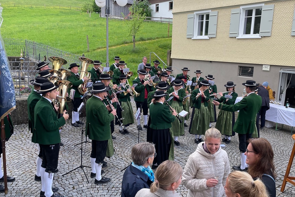 Der Lobpreis der Trompeten und Posaunen wurde erhört und so konnten wir trotz schlechter Wettervorhersage im Anschluß an den Gottesdienst bei einem Gläschen Pfarrwein noch weiteren Stücken des Musikvereins lauschen.