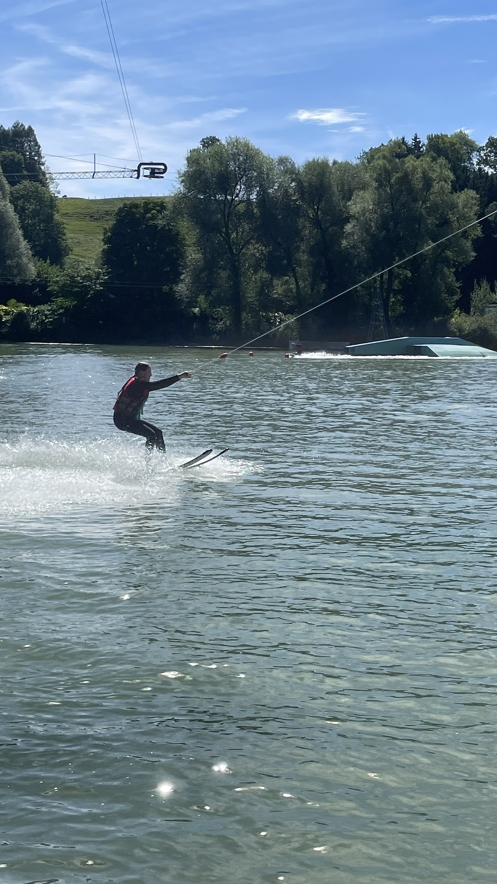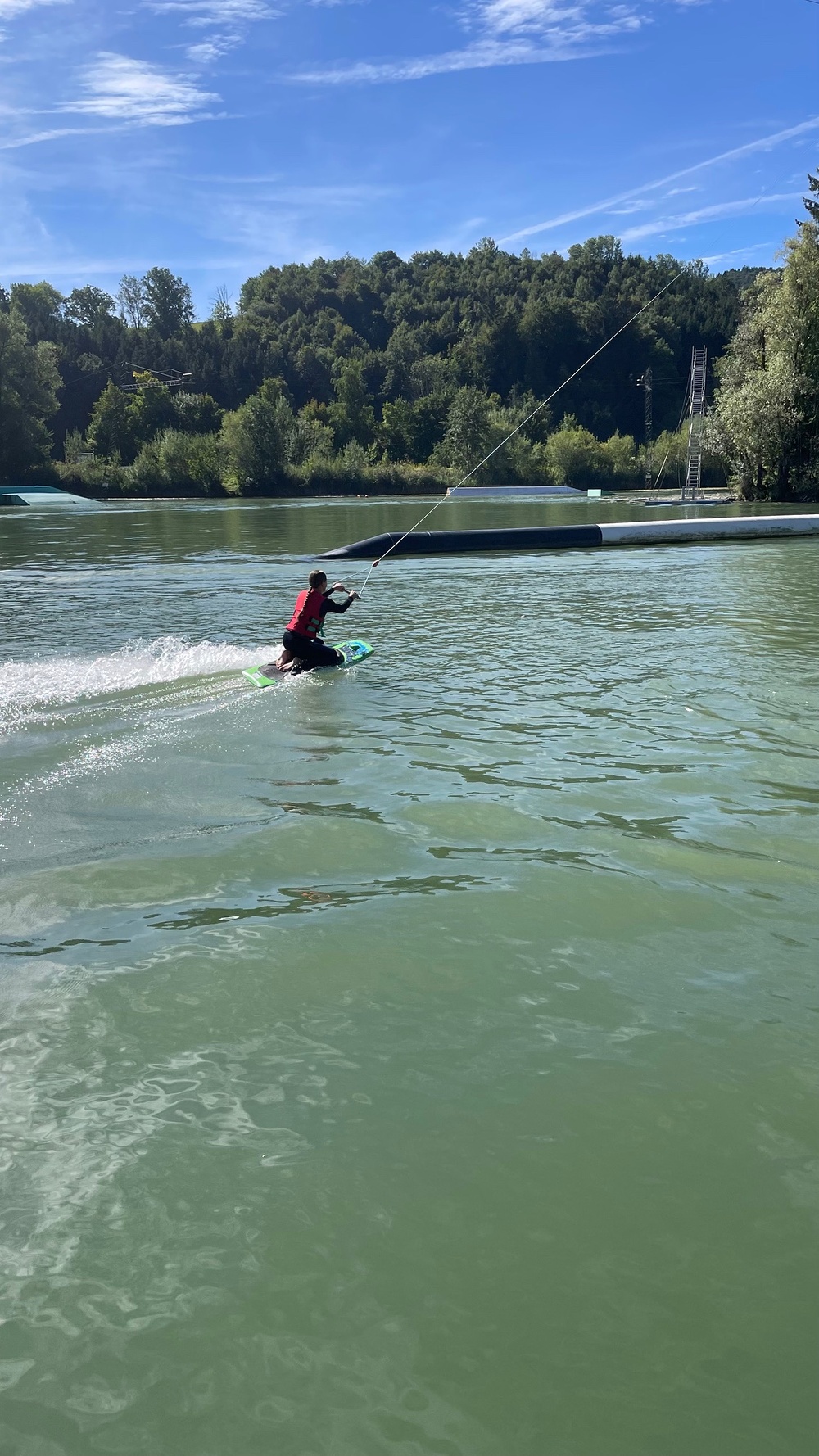 Nach ein paar Anlaufschwierigkeiten haben es aber alle geschafft, sich auf dem Wasser zu halten – ob mit Skiern oder Knieboard. Das Wasserskifahren hat riesigen Spaß gemacht. Nach etwa einer Stunde waren wir dann aber auch schon ziemlich außer Kraft.