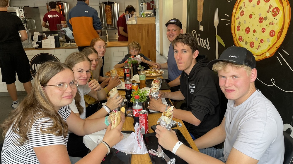 Als wir dann nach einiger Zeit alle wieder an Land und trocken waren, fuhren wir zu einem "Dönerladen", in dem wir uns ausreichend stärkten.