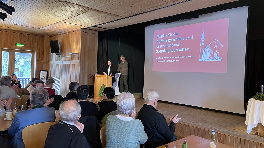 Im Anschluss an den Gottesdienst lud das engagierte Pfarrteam zum Kässpätzle-Essen in den Thalsaal ein.