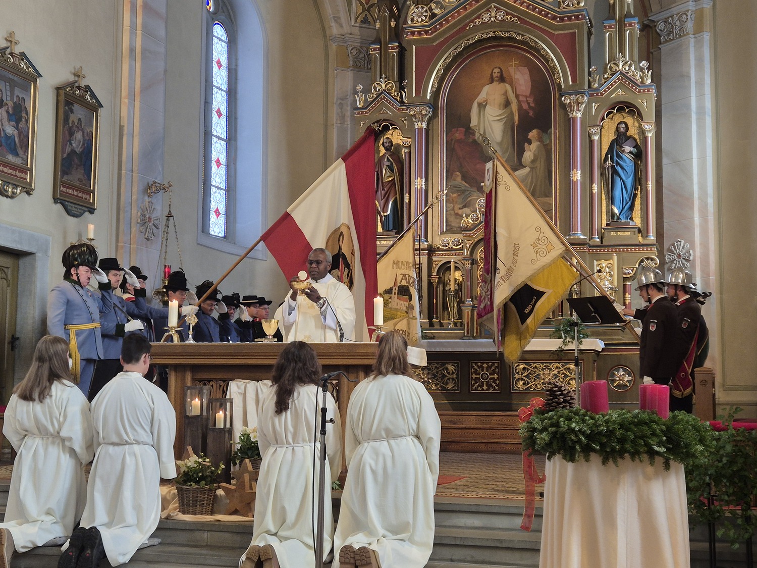 Die feierliche Festmesse wurde musikalisch vom Thaler Kirchenchor mit wunderschönen Adventsliedern umrahmt und die Fahnenabordnung der Vereine trug maßgeblich zur festlichen Stimmung bei.