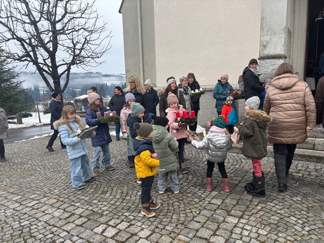 Zu Beginn der Messe trugen die Kinder beim gemeinsamen Einzug ihre Adventskränze in die Kirche, die dann von Pater Abidon gesegnet wurden.