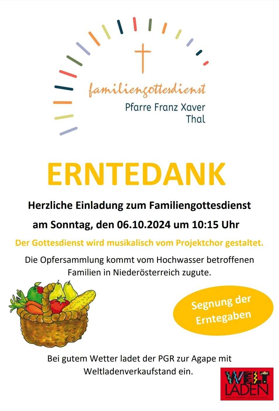 Erntedankfeier - gestaltet vom Projektchor, anschl. Agape mit Weltladen
