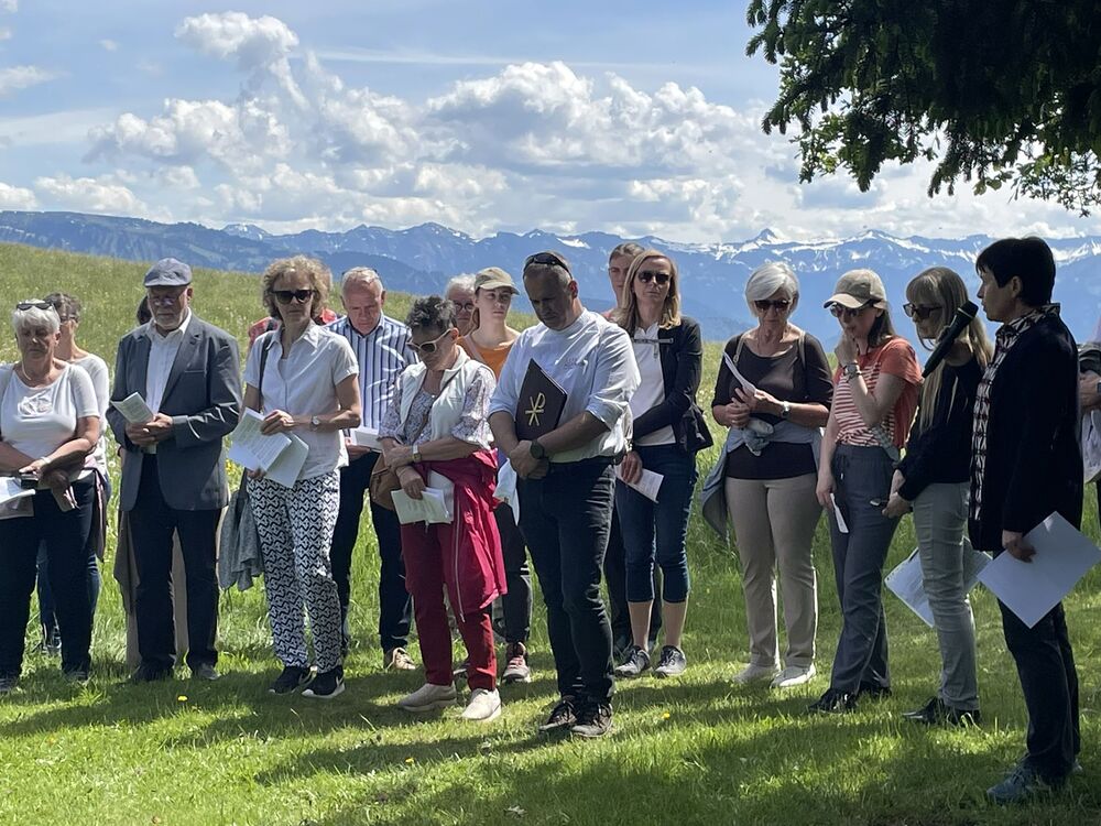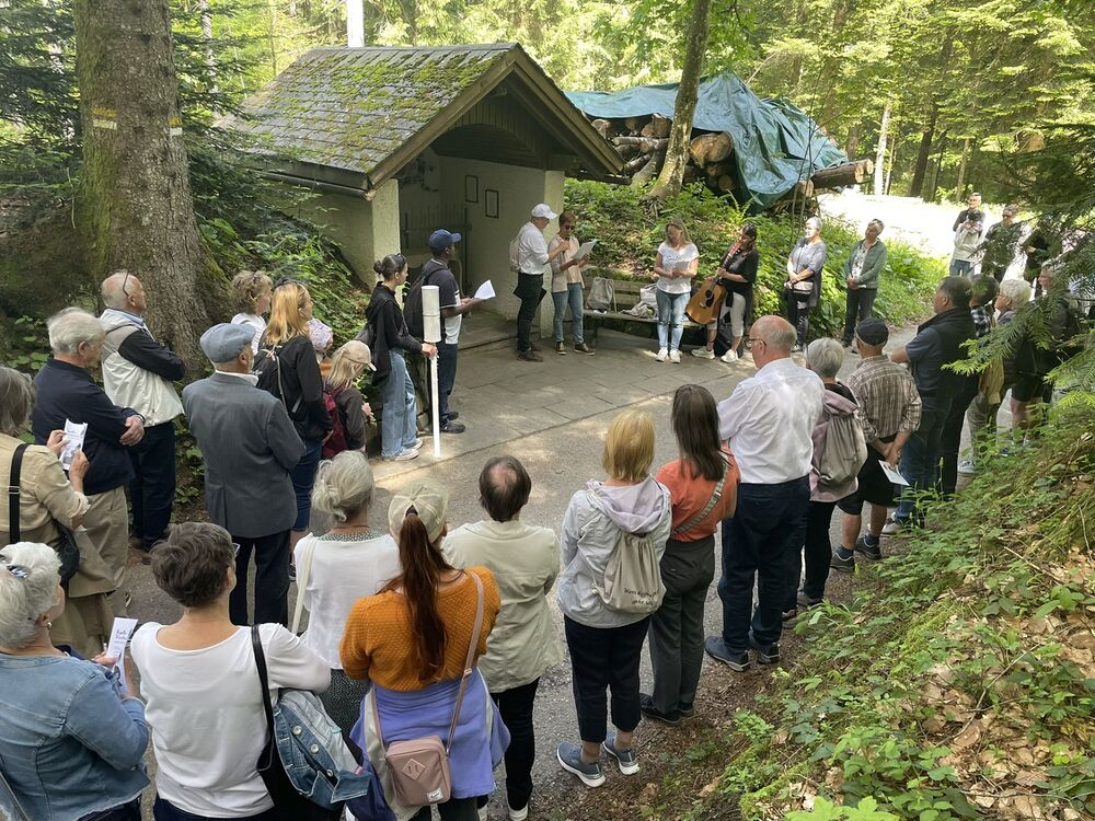 Zum Abschluss unserer gemeinsamen Kapellenwanderung wurden wir mit einer wunderbaren Agape unter der majestätischen Marienlinde belohnt, die vom PGR Sulzberg organisiert wurde. Marion und Petra sowie die Sängerinnen und Sänger der Singgemeinschaft Langen sorgten abwechselnd für die musikalische Umrahmung bei den Stationen.