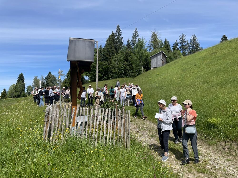 Bei strahlendem Sonnenschein und einer wunderbaren Sicht in die Weite des Bregenzerwaldes, Pfänderstocks und Allgäus hinein, machten sich an die 100 Pilger aus unseren vier Pfarren auf den Weg.