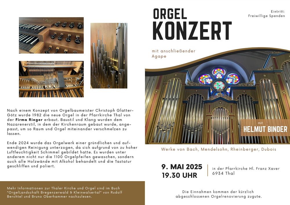 Orgelkonzert in der Thaler Pfarrkirche am 9. Mai um 19.30 Uhr
